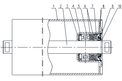 1.輥體 2.軸 3.軸承座 4.內(nèi)密封圈 5.軸承 6.迷宮密封 7.密封盤 8.擋圈 9.擋板 10.擋圈