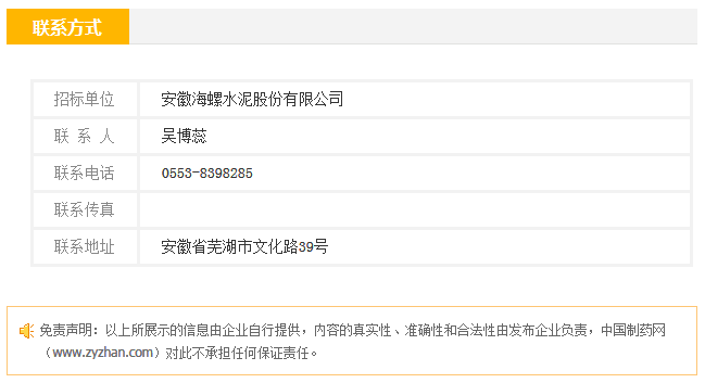 投標文件送達地點:蕪湖市文化路39號海螺大酒店14層第1412會議室