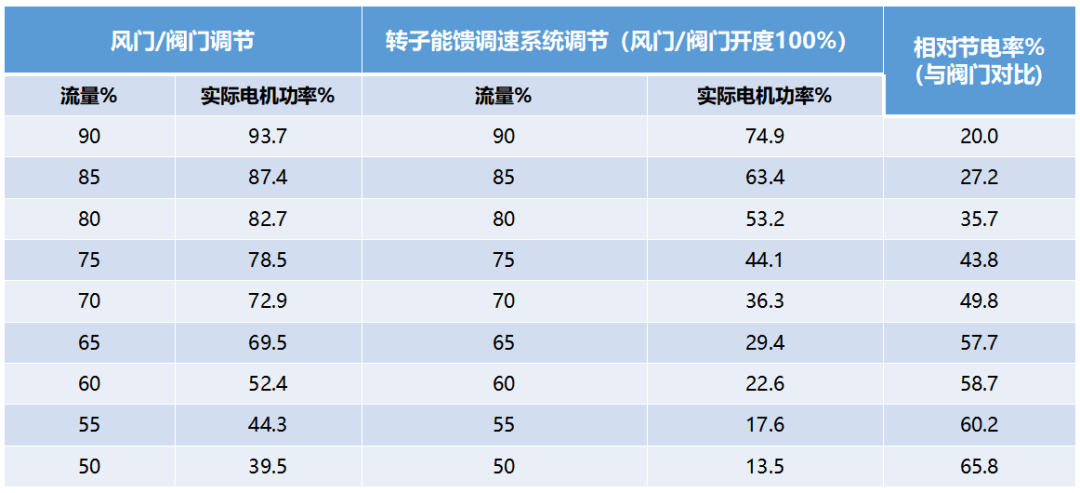 相較于工頻轉(zhuǎn)速,65%風門開度節(jié)電率約為13.7%。