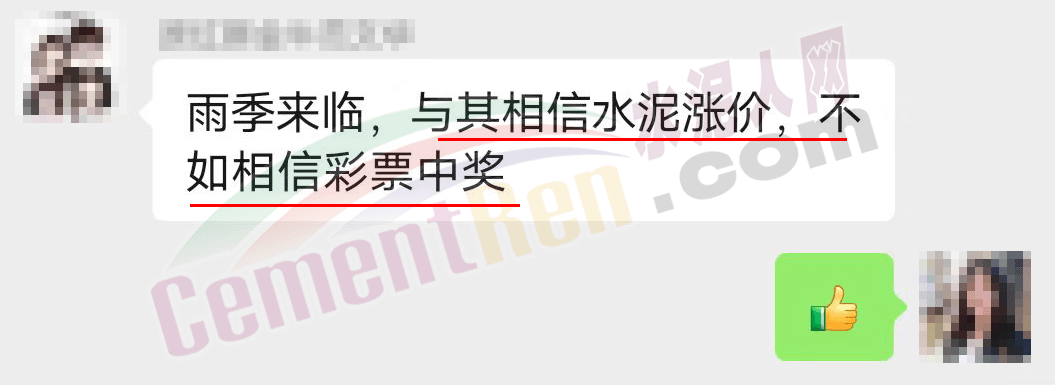 對(duì)于水泥企業(yè)復(fù)價(jià)上調(diào),一經(jīng)銷(xiāo)商調(diào)侃稱,雨季來(lái)臨,與其相信水泥漲價(jià),不如相信彩票中獎(jiǎng)。