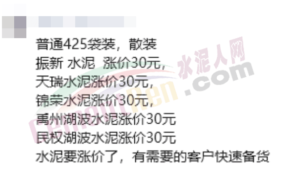 經銷商表示,前幾天經銷商群里有消息說,8月份山東要停窯15天,水泥價格上調30元/噸,這兩天河南就已經有企業通知上調價格了。