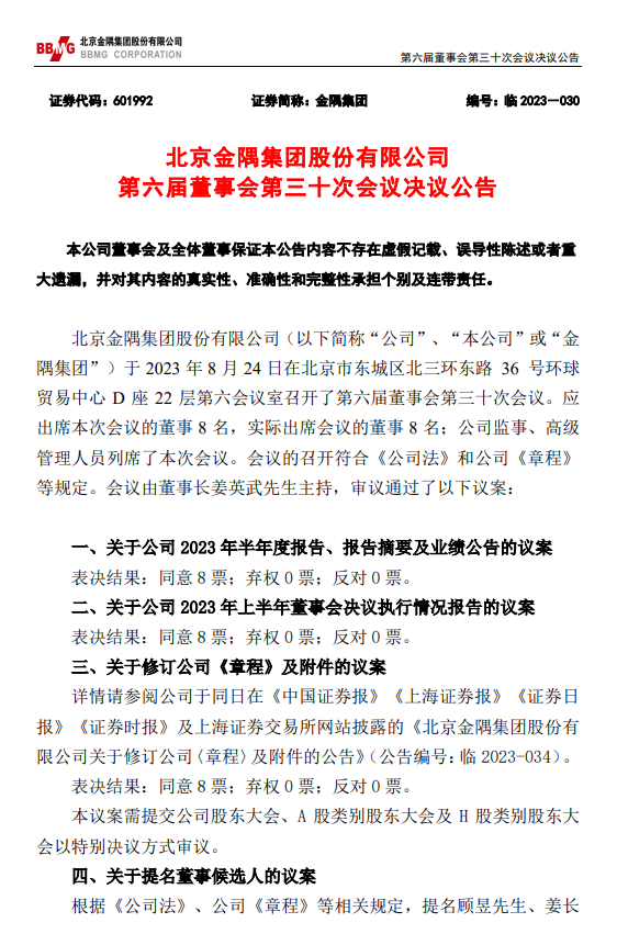 金隅冀東24日晚間公告,提名顧昱先生、姜長祿先生為公司董事候選人。聘任顧昱先生為公司總經理,聘任孔慶輝先生為公司副總經理,任期與本屆董事會任期一致,同時孔慶輝先生不再擔任公司總經理助理。