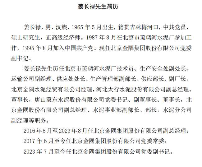 據水泥人網了解,自今年2月原總經理姜英武出任金隅集團董事長之后金隅集團總經理便一直空缺。
