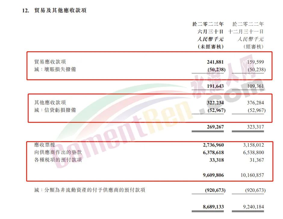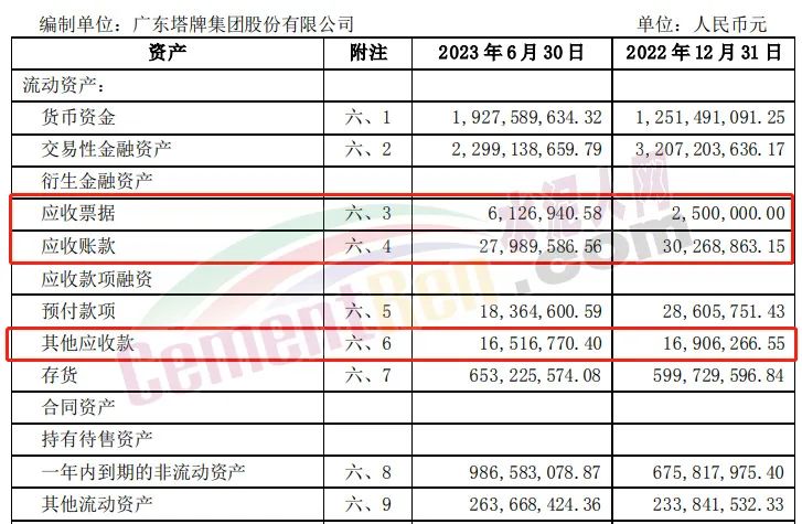 2023年上半年亞洲水泥應收賬款5.6億,應收票據8.05億,其他應收款12.2億。