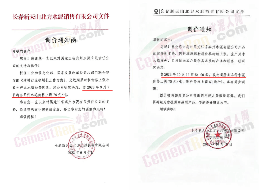 東北遼吉黑地區,9月份冀東、北方、亞泰、山水、天瑞水泥等多家主要品牌企業陸續通知上調水泥及熟料報價50-70元/噸。至今僅部分企業落實上調30元/噸。10月中旬再次通知上調50-70元/噸,兩次累計上調100-140元/噸。