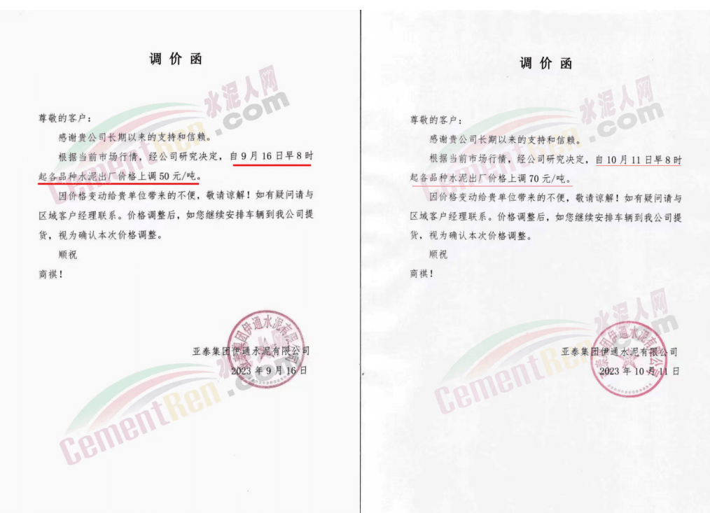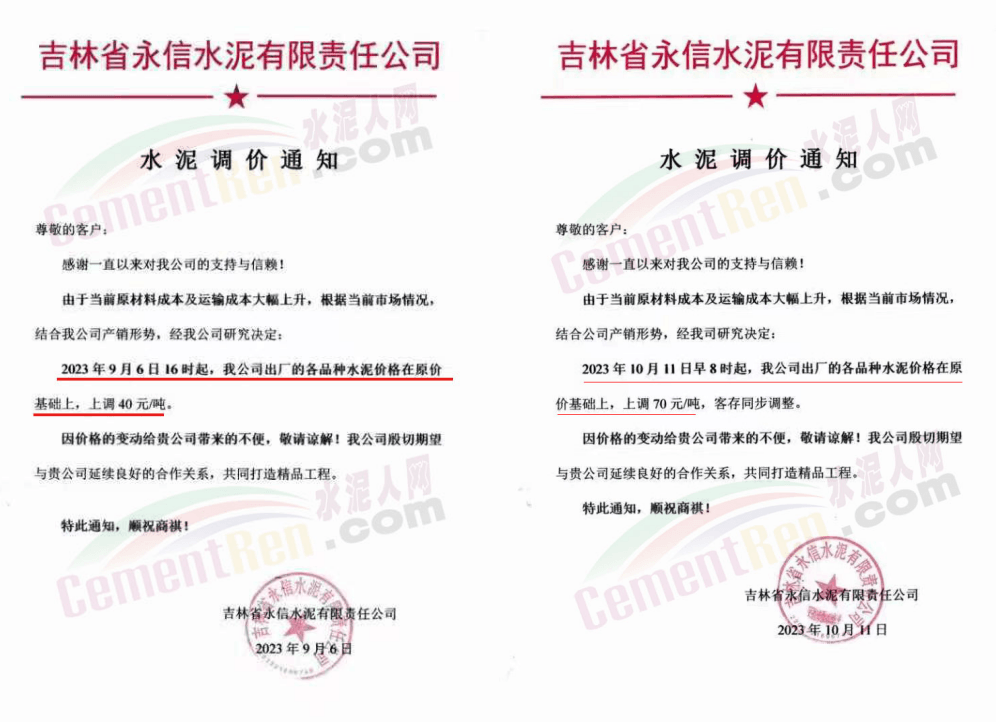 湖南寧鄉南方水泥有限公司分別于9月20日,9月28日,10月12日三次通知上調水泥報價各20元/噸,累計上調60元/噸。