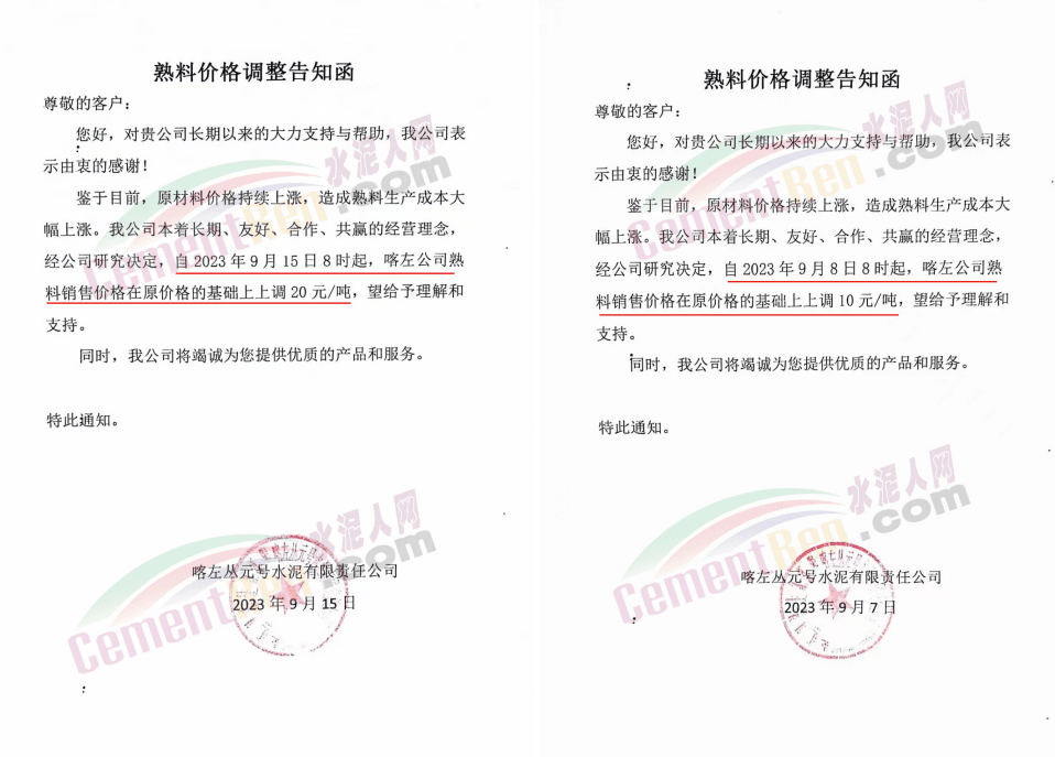 據了解該企業曾于9月21上調水泥熟料報價30~40元/噸,兩次累計上調80-90元/噸。另據當地企業反饋,按計劃月內還將進行1~2次上調。