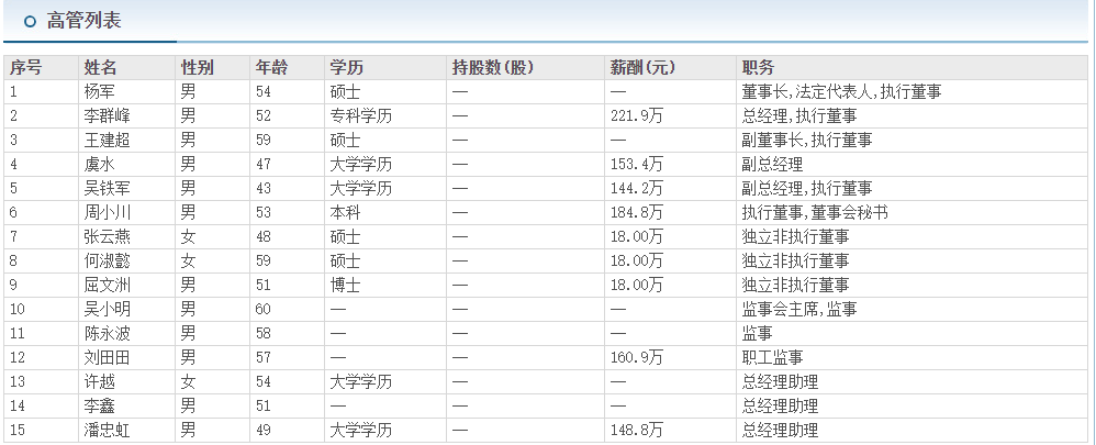 水泥人網(wǎng)注意到,海螺水泥上市公司高管列表15位高管中有9位年齡在50-60歲之間,占比達(dá)60%。其中包括董事長楊軍,副董事長王建超,董秘周小川,總經(jīng)理李群峰,總經(jīng)理助理許越等人。監(jiān)事暨監(jiān)事會(huì)主席吳小明已于今年9月26日遞交了書面辭職報(bào)告,因其已達(dá)到法定退休年齡,申請辭去監(jiān)事會(huì)主席暨監(jiān)事職務(wù)。