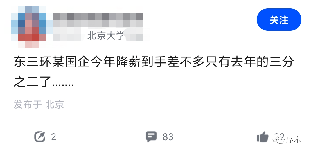 網友爆料說:某軍工央企,過完年開始部門考核,個人績效考核,完成當月指標情況下工資不變,未完成的績效低,工資降低。上個月非常多員工工資都少了,很多人到手六千多,也就是變相降薪的一種方式,本來就是996的工作強度,現在又開始變相降薪。“現在的國央企,員工能進能出、領導能上能下、薪酬能增能減是標配,人效提升是大勢所趨”。