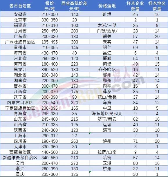 水泥人網(wǎng)信息中心最新調(diào)研數(shù)據(jù)顯示:全國31個(gè)省市1070余家企業(yè)中,廣西來賓、河南鶴壁、四川瀘州等區(qū)域水泥報(bào)價(jià)已跌破200元/噸。寧夏銀川批發(fā)價(jià)下探至150-170元/噸,成為價(jià)格“深坑”。多區(qū)域價(jià)格撕裂加劇:廣西壯族自治區(qū)內(nèi)價(jià)差高達(dá)300元/噸,內(nèi)蒙古自治區(qū)內(nèi)價(jià)差320元/噸。水泥核心消費(fèi)市場之一的華東地區(qū)竟成了低價(jià)“重災(zāi)區(qū)”:安徽蚌埠210元/噸、福建龍巖210元/噸、浙江杭州260元/噸。